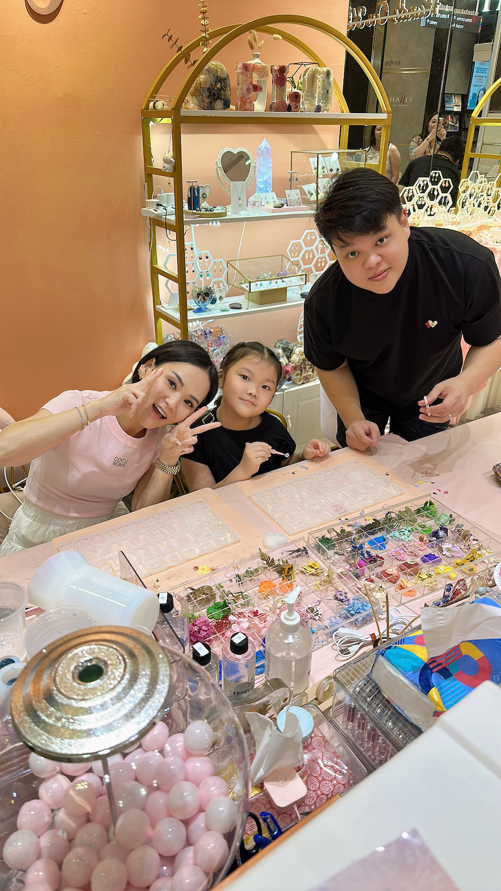 3) Guided Resin Art Process – Explore the art of resin mixing, pouring, flower arrangement, and color blending under guidance.